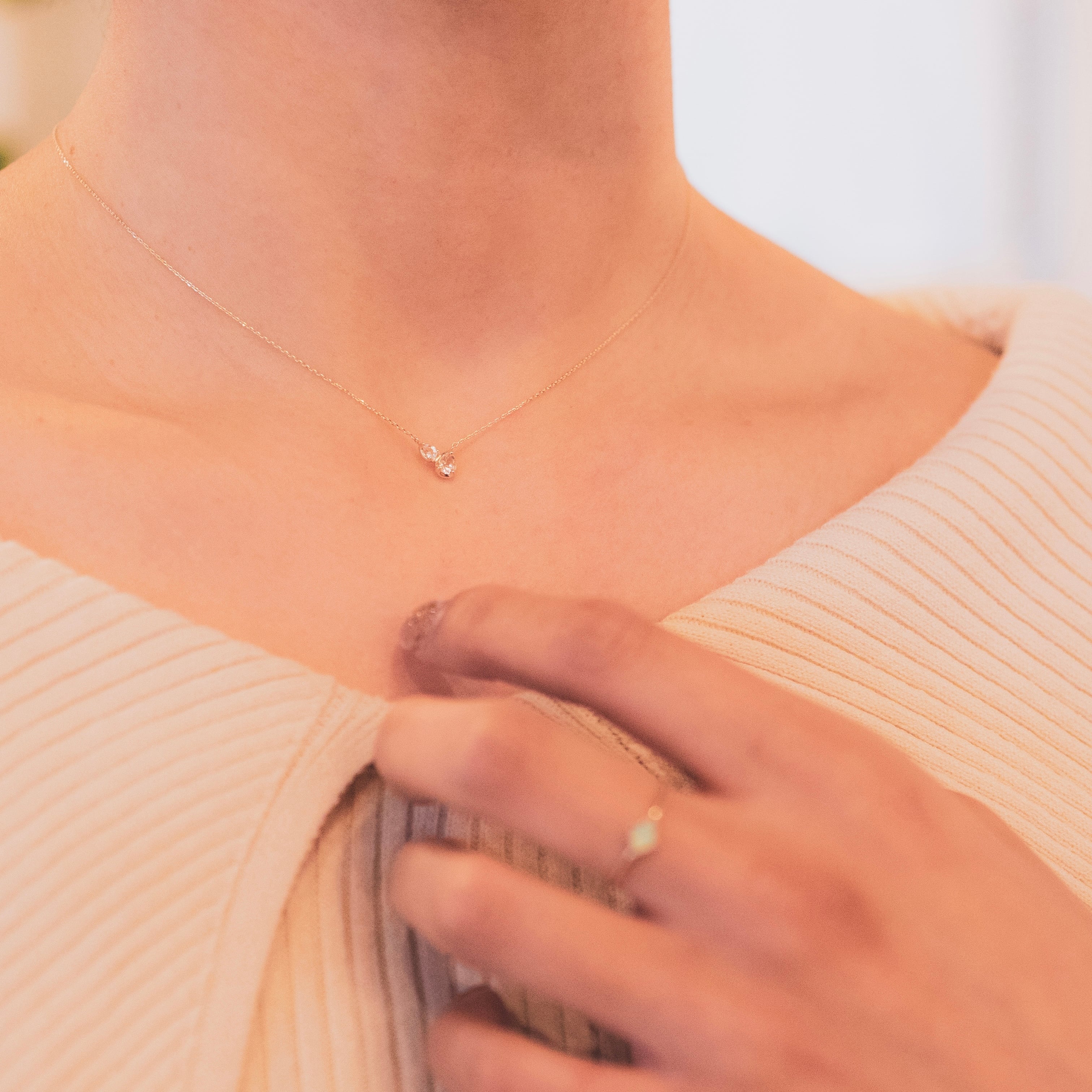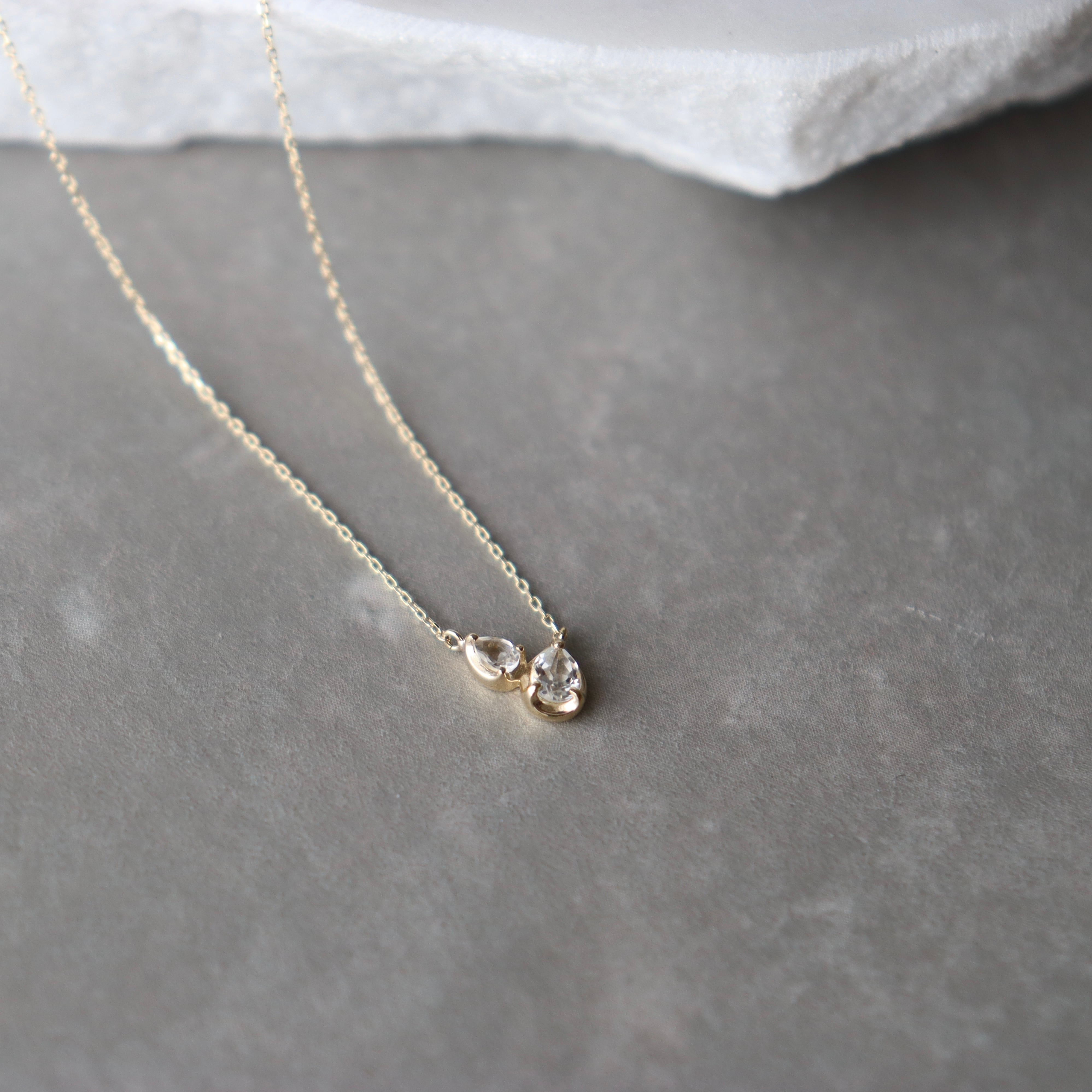 サイズ違いのホワイトトパーズを絶妙なバランスで合わせたネックレス。1本でシンプルにきめても細身チェーンの華奢ネックレスと合わせるのもおすすめです。